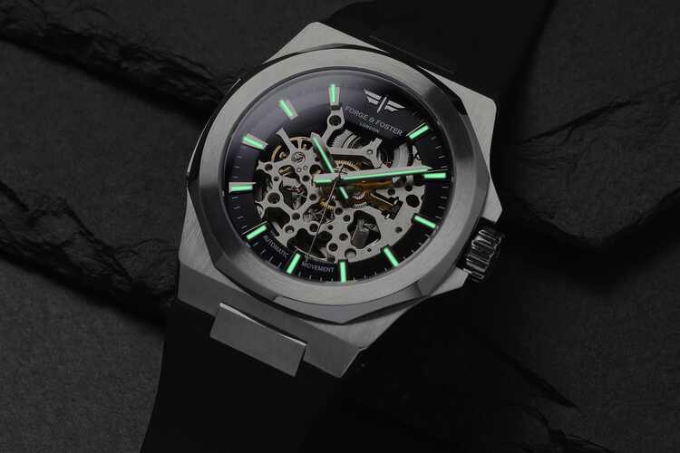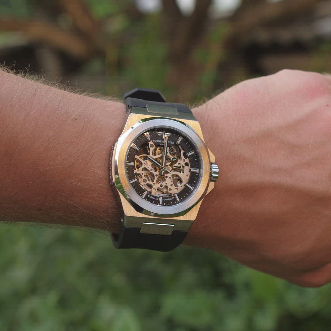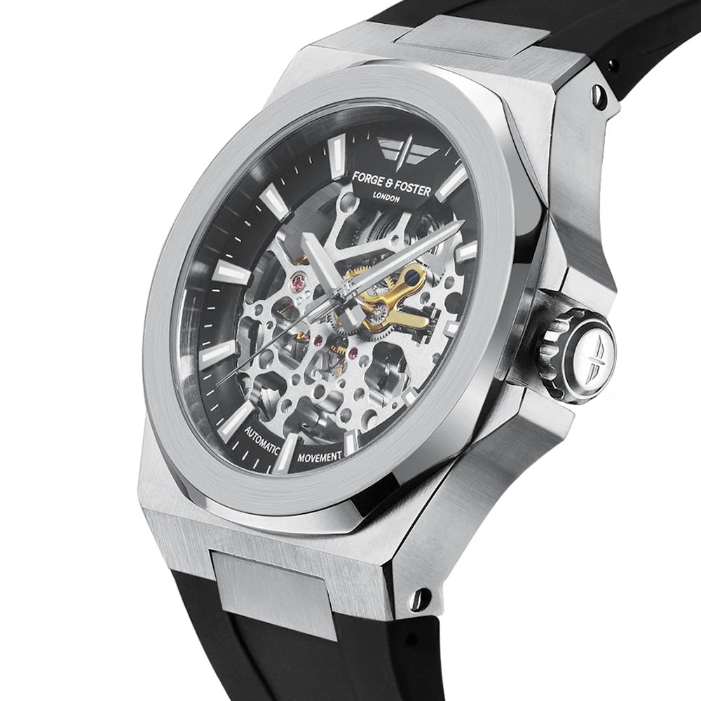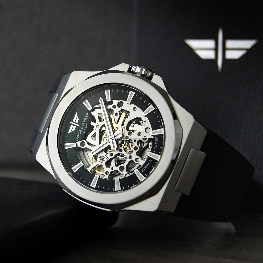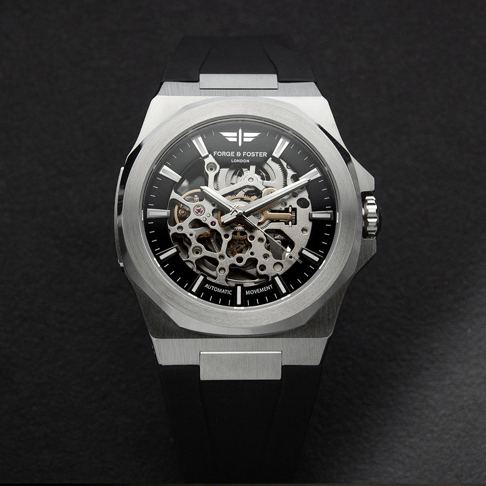 The Maven X series is our skeletonized version of the Maven, combining the same sport & style in a 42mm casing with a vulcanized rubber strap that fits any wrist size. The watch is a 20-jewel automatic movement with a 42 hour power reserve, powered by kinetic movement or self-winding.