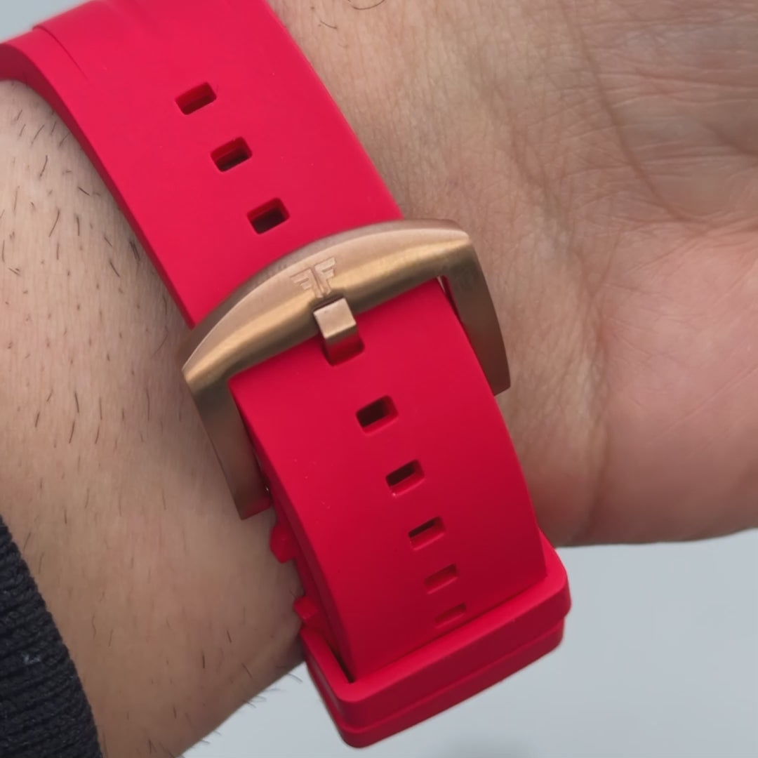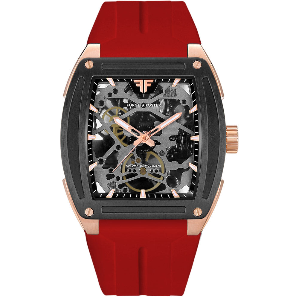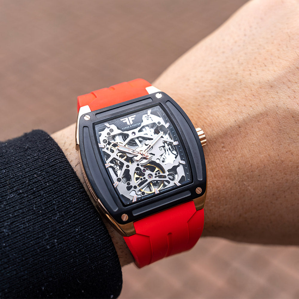 The Titan X series is our skeletonized version of the Titan, combining the same sport & style in a 41mm casing with a vulcanized rubber strap that fits any wrist size. The watch is a 20-jewel automatic movement with a 42 hour power reserve, powered by kinetic movement or self-winding.