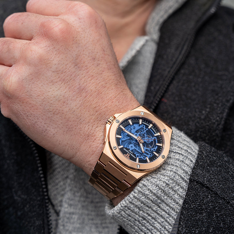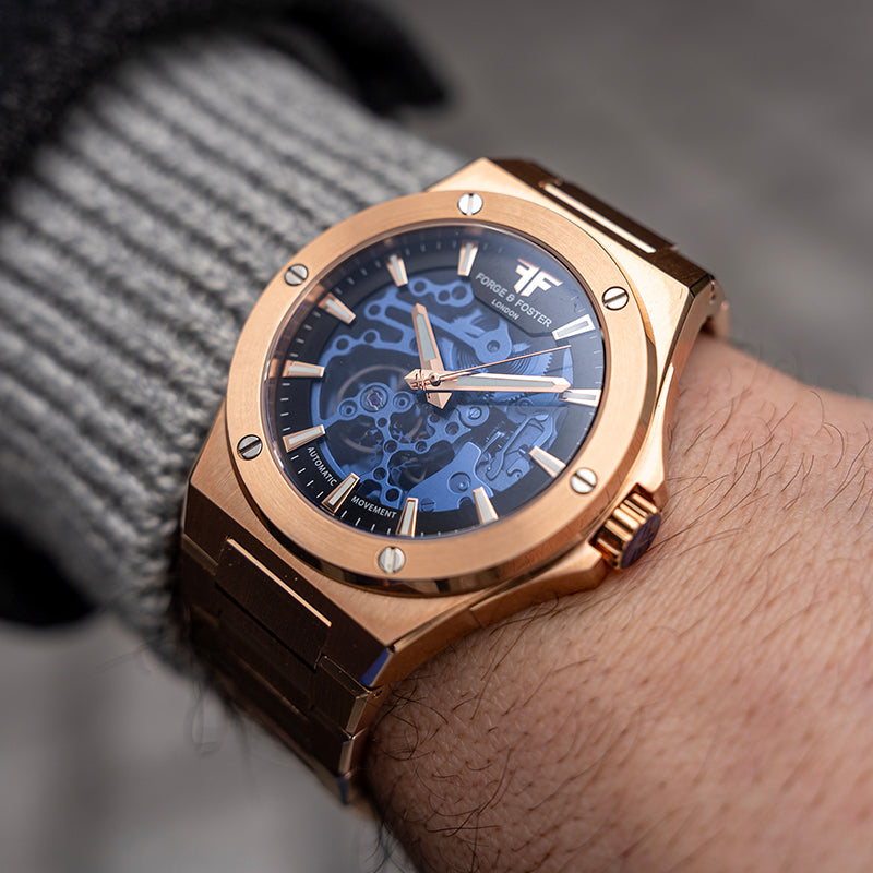 Instead, the springs & gear trains inside the movement are powered by your kinetic energy from your wrist to keep time with a 40 hour power reserve.